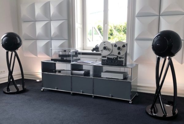 Brand connoisseurs will recognize the Lissajous curve stand – the logo that has accompanied Cabasse since its inception. THE PEARL PELEGRINA features a custom cut polished mirror metal band that circles its sphere to further enhance the many subtle details and lustrous finish, making this system a truly exclusive piece.